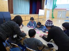 14日に、地域のみなさま16名をお招きしての昔遊び交流会が行われました。この日は雪が降る寒い1日でしたが、体育館の中では、1年生と地域のみなさまとの温かい交流会が行われました。準備や進行も1年生が行い、大きくなった姿も見ていただきました。 みなさまには、「折り紙」「あやとり」「こま回し・紙ずもう」「お手玉」「けん玉」のコーナーを担当していただき、子どもたちが順番に回りました。どのコーナーでも、笑顔があふれ、しっかりとふれ合うことができました。その後、教室で楽しく茶話会もでき、楽しくお話もできました。最後に1年生からのお礼と手作りの「ペン立て」を贈り、和やかな会を終えました。来年もぜひお願いしたいと思います。 |