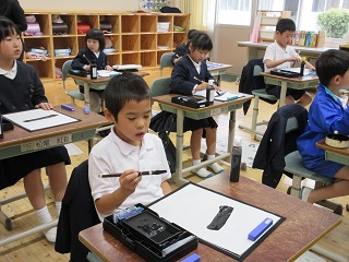 | 4月10日 今日は、初めての学習がたくさんありました。1年・3年・4年・6年についてついて紹介します。1年生にとっては初めての授業。とても緊張しているようです。でも、緊張をほぐすように、担任の先生が絵本を読んでくれました。3年生は、初めての書写、4年生は、初めての地図帳、6年生は、初めての歴史授業(年表)です。どの学年も、興味津々で授業を受けていました。 | |||