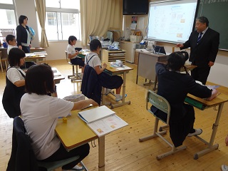 | 4月22日は、ALTが来て先生2名で外国語を勉強する日でした。この日は、3年生も英語を学習しました。音楽や画像・映像を交えながら、たくさん英語をしゃべったり聞き取ったりしました。「英語の勉強は楽しいな」と、子どもたちは意欲的に学習しました。 | |||